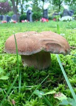 Anschließend lief ich mit meiner Frau und unserer Tochter noch über den hiesigen Friedhof. Hier hatte ich schon länger einen vielversprechenden Bereich im Visier, wo ich den ein oder anderen Pilz vermutete. Und mein Gefühl und meine Nase funktionieren noch richtig gut, denn wir wurden fündig: unter einer Eiche und einer Linde auf gerade mal 12 Quadratmetern standen viele muskulöse Friedhofswächter in Form von schönen knackigen Sommersteinpilzen.