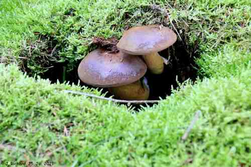 Foto: Zwei Maronen verstecken sich in einer kleinen Mulde, die ihnen das Moos gelassen hat.