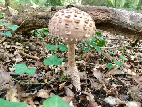 Neben zwei schönen Sommersteinpilzen fanden wir auch einen Anhängselröhrling, unseren ersten Parasol für 2021 mit einer sehr schön ausgeprägten Natterung am Stiel sowie einige Frauentäublinge und einen Fleischroten Speisetäubling. Hinzu kamen noch drei Graue Scheidenstreiflinge, deren Scheiden aber so tief in der Erde saßen, dass ich sie für das Gesamtfoto leider nicht aus dem Boden bekommen habe.