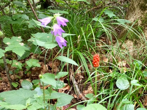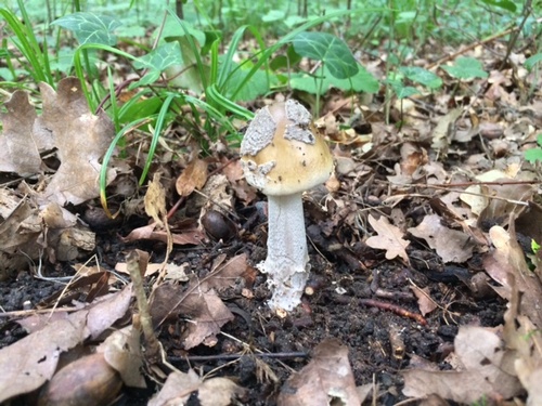 Auf dem Weg dorthin sammelten wir noch einige Blutrote Röhrlinge am Wegrand ein. In dem Wald angekommen, wird man gleich von unzähligen Glockenblumen und vom Gefleckten Aronstab begrüßt. Der erste Pilz, der hier mit ins Körbchen kam, war ein Umbrabrauner Scheidenstreifling.