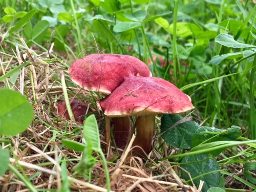 Foto: Mit ihren oftmals rosenroten bis blutroten Farben sind Blutrote Röhrlinge im saftigen Gras immer wieder eine Attraktion.
