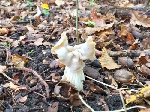 Foto: Sieht ein bisschen aus wie ein Engel, doch damit ist es nicht viel. Lange galten Herbstlorcheln als gute Speisepilze. Doch das ist vorbei. Warum sie heute nicht mehr als Speisepilz freigegeben wird, ist hier zu lesen, Tageseintrag vom 17. November 2012.