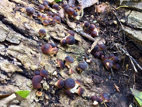 Foto: Für Thomas zählen die Südlichen Ackerlinge zum Besten, was überhaupt an Pilzen zu ernten ist. Er hat die alte morsche Pappel, an der sie schon seit Monaten gedeihen, stets im Auge. Auch diesmal konnte er zu seiner Freude wieder etliche der Pilze mit dem wunderschönen warmen Braunton der Hüte mitnehmen. (2 Fotos © Thomas)