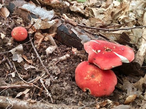 Foto: Der Trockenheit zum Trotze wachsen derzeit vor allem Täublinge, bei denen die Harten Zinnobertäublinge klar die Oberhand haben. (18 Fotos © Thomas)