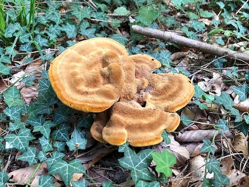 Foto: Sklerotienporlinge mit mächtigen Trichtermündungen. Sie sind essbar, allerdings nicht mehr in diesem Alter.