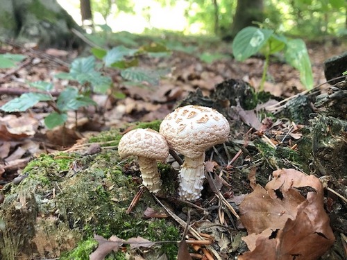 Weil die Wulstlinge gerade einen ihrer Auftritte haben, liefen wir zum Schluss noch eine Stelle an, an der gemeinhin viele Grüne Knollenblätterpilze wachsen, in der Hoffnung, wir würden auch jetzt schon fündig werden. Und nach akribischem Absuchen konnte ich dann auch welche finden, und zwar in einem Altersstadium, das gerade für Anfänger oder angehende Hexenei-Sammler sehr interessant sein dürfte.