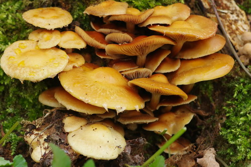 Foto: Auch die ersten leckeren Stockschwämmchen sind bereits da. Ihre sichtlich trockene Erscheinungsweise bildet die regenlosen vergangenen Wochen in Sachsen gut ab. (Foto © Peter Rohland)