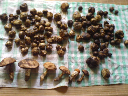 Und was soll ich sagen: Über 2 Kilo Böhmische Trüffeln habe ich gefunden, dazu noch die ersten Birkenpilze und eine kleine zerfressene Rotkappe.