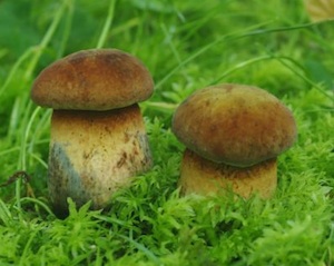 2 Fotos: Der erste Sommersteinpilz der Stadt war klein, aber fein. Und auch die zwei Netzstieligen Hexenröhrlinge (rechts) konnten sich sehen lassen.
