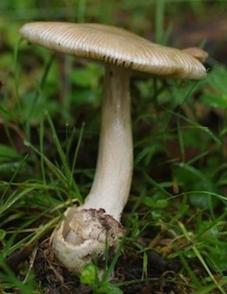 2 Fotos: Der Rotbraune Scheidenstreifling (Amanita fulva, links) ist, wie alle Scheidenstreiflinge, ein wohlschmeckender Speisepilz. Da Scheidenstreiflinge roh giftig sind, müssen sie gut erhitzt werden. Rechts ein sehr willkommener junger Sommersteinpilz (Boletus aestivalis) in besonders knubbeliger Form. (3 Fotos © Christian O.)