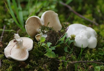 Foto rechts: Mehlräslinge sind vorzügliche feine Speisepilze, besonders geeignet für helle Soßen oder Suppen. Nicht immer wächst ihr Stiel, wie hier, zentral, sondern seitlich. Die Pilze riechen deutlich nach Mehl. Man muss sie sicher von zum Teil sehr giftigen weißen Trichterlingsarten unterscheiden können.