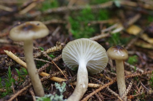 Foto: Natternstieliger oder Olivbrauner Schneckling - Essbar. Diesem Pilz wurden von Dr. Norbert Arnold vom Leibniz-Institut für Pflanzenbiochemie der Universität Halle/S. antibiotische Wirkstoffe entzogen, die nach marktgerechter Aufbereitung mit großem Erfolg gegen die Kartoffelfäule eingesetzt werden.