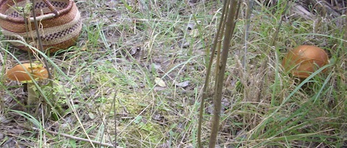 Foto: Der Korb wartet noch auf Fracht, aber die erste Ware ist auch schon in Sicht. Rolf hat wieder herrliche Rotkappen in seinem Rotkäppchenland, der Neuen Harth südlich Leipzig/Markkleeberg, geerntet.