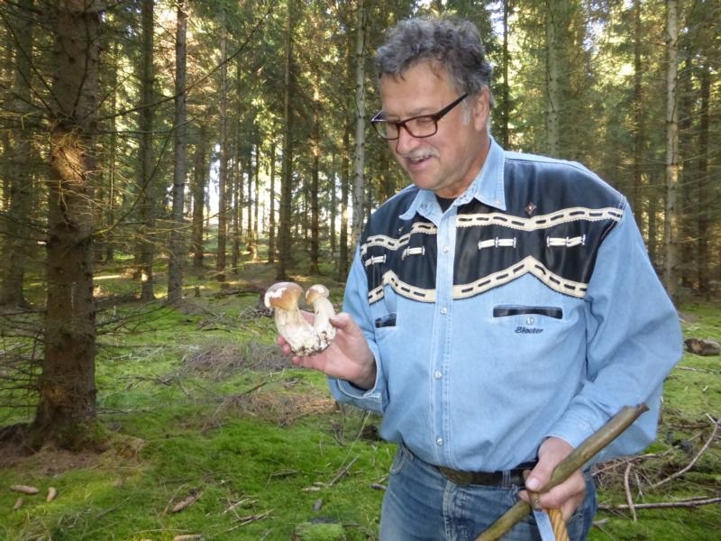 Foto: Ein Bild wie mitten aus dem Pilzsommer. Doch es ist November, und Gert freut sich sichtlich nicht nur über diesen Steinpilzzwilling, sondern über einen tollen Fund im fortgeschrittenen Herbst.