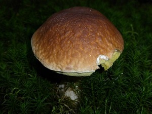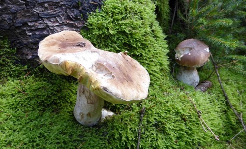 Foto: Auch Steinpilze landeten im Korb. Das junge Exemplar im Hintergrund deutet an, dass sogar noch welche nachkommen könnten. (3 Fotos © Gert F.)