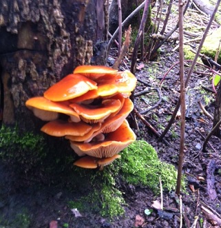 "Heute habe ich 'meine' Austernseitlinge besucht und musste feststellen: Da war ein anderer Pilzfreund leider schneller gewesen. Entschädigt haben mich aber schöne Judasohren und herrliche Samtfußrüblinge, siehe Foto links. Sie haben mein köstliches Bärlauchravioli deutlich aufgewertet.