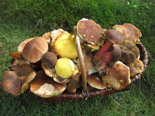 Foto: Birkenpilze und Rotkappen tummeln sich in Angelas Korb. (Foto © Angela)