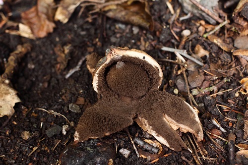 Besonders habe ich mich über einen Erdstern gefreut, den ich schon im Frühjahr entdeckt hatte. Beim ersten großen Regen nach der langen Trockenheit haben sich endlich die ersten Fruchtkörper geöffnet und als Riesenerdsterne (Geastrum melanocephalum) entpuppt.