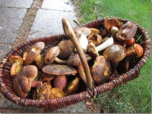 Auf den zwei Fotos seht Ihr meine Ernte vom 2. September. Im Korb liegen cirka fünf Kilo bester Röhrenpilze, gefunden in eineinhalb Stunden.