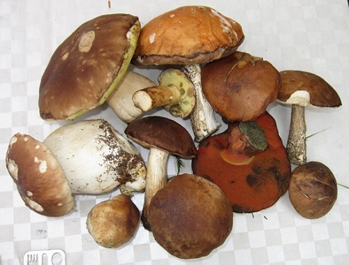 Steinpilze, Frauentäublinge, Hexenpilze, Perlpilze, Goldröhrlinge, Rotfüßchen und wenige kleine Maronen.