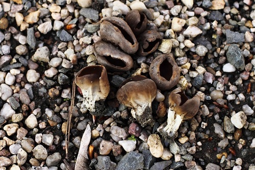 Foto: Schwarzweiße Becherlorchel, ungenießbar.