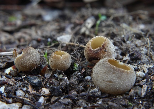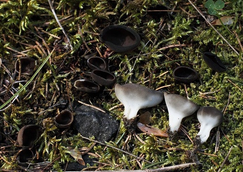 Bei den ebenso ungenießbaren Kerbrandigen Napfbecherlingen habe ich für ein Foto extra noch einmal vorbeigeschaut. Sie sind sehr schön gewachsen