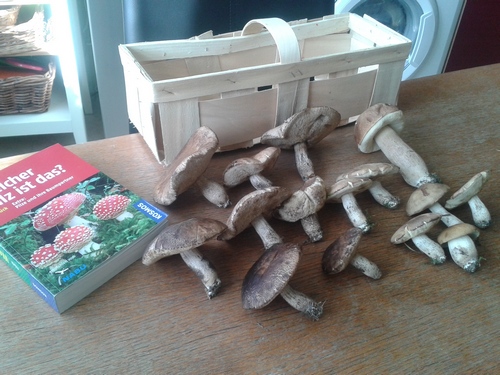 Maronen, Steinpilze, Hexenröhrlinge und viele Perlpilze waren meine Ausbeute.