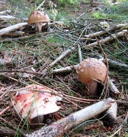 Foto: Hier sieht man gut, wie »dick und fett« die Perlpilze sind. Man denkt von weitem, dass es Steinpilze sind...