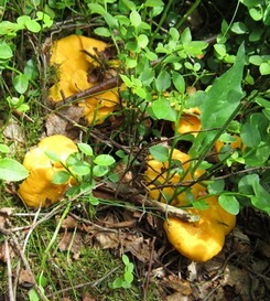 wenige. Dafür sind die Pfifferlinge im Kommen! Im Fichtenwald fällt der ungenießbare Fichtenspargel auf.
