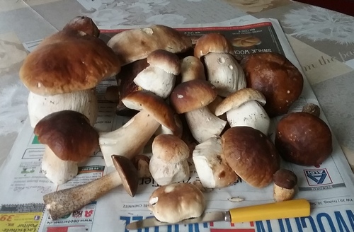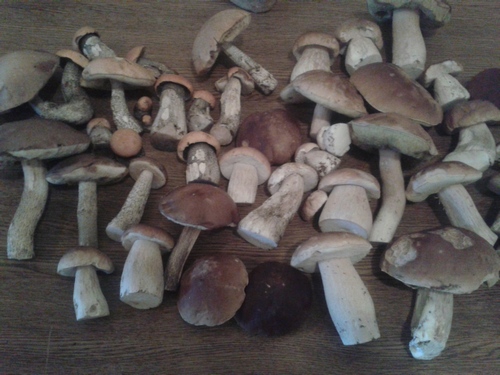 »Ich war heute mal wieder im Wald und habe zu meinem Erstaunen viele Steinpilze gefunden. Einige Rotfüße, ein Hexenpilz, einige Flaschentäublinge und zwei Maronen gab es dazu.