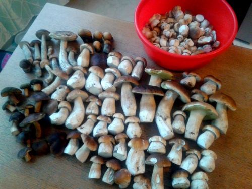 Es ist echt Wahnsinn, was da momentan im Wald los ist! Jede Menge Steinpilze in allen Größen und Formen. Einer schöner als der andere, siehe das Foto rechts. Auch Birkenpilze, Rotkappen und Maronen waren wieder mit dabei.