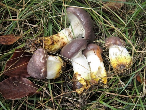 Foto: Entnimmt man Kuhmäuler dem Erdreich, sieht man die kanariengelb leuchtende Farbe an der Basis. In der Schweiz ist das Kuhmaul ein Marktpilz. (3 Fotos © Hermann)