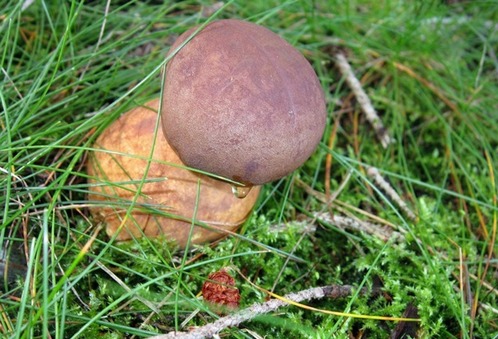 In zwei Stunden fand ich knapp drei Kilo Schwamme: Cirka 40 frische Kuhmäuler, einige Staa'pilze und Birkenpilze und einen herrlichen Flockizwilling und einige andere mehr.