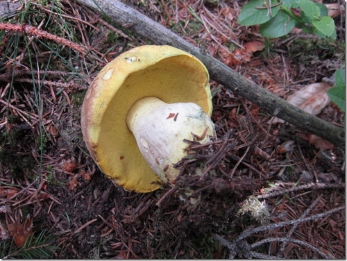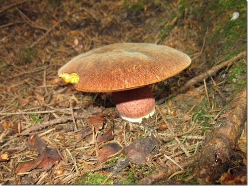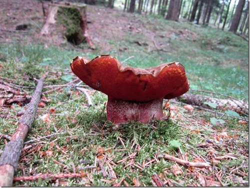 Foto: So ein schöner Flockenstieliger Hexenröhrling - und keinen Pilzkorb oder Pilzbeutel für den Transport dabei. Manchmal meint es das Schicksal nicht gut mit uns Pilzfreunden. (Foto © Torsten)