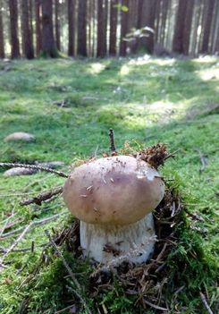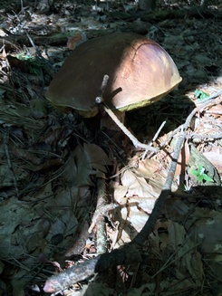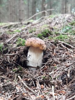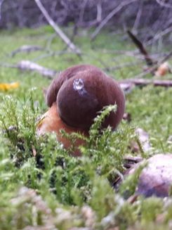 Foto: Dass Scuttle in dem von Harvestern durchfurchten Waldgebiet auch vereinzelt Steinpilze (links) und Maronen (rechts) fand, lässt ahnen, was dieses Gebiet zuvor an Pilzen hervorgebracht hat. (3 Fotos © Scuttle)