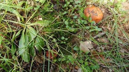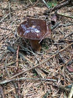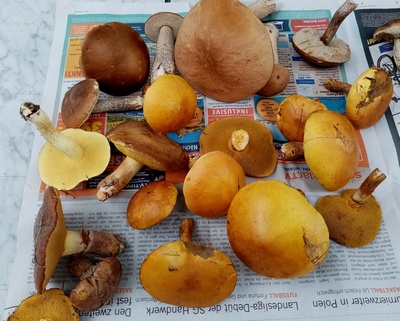Nur auf wenigen Metern und stets an jungen Lärchen, Birken, und Kiefern ließen sich in einer guten halben Stunde zahlreiche Goldröhrlinge, Birkenpilze, Butterröhrlinge (Butterpilze) und Ringlose Butterröhrlinge finden.