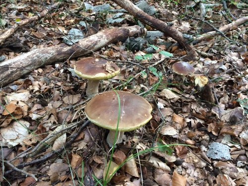 Die Steinpilze sprießen nach wie vor. Von ihnen haben wir uns ein paar junge Exemplare mitgenommen. Außerdem konnten wir Goldröhrlinge, Flockis, Rotfüße, Birkenpilze und für dieses Jahr die ersten Safranschirmlinge entdecken.