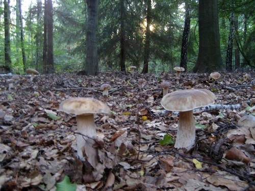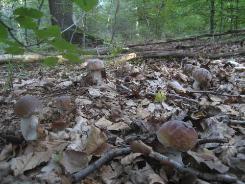 Steinpilzen gestolpert. Dicke Stiele, prächtige Hüte. Der Korb war nach