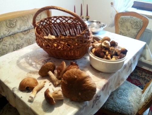 Heute habe ich mich mit meiner Tochter aufgemacht. Und endlich gibt es Steinpilze und Maronen. Obwohl der Sonntagnachmittag nicht gerade die günstigste Zeit zum Suchen ist, konnten wir eine stattliche Menge zusammentragen.