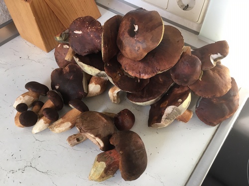 begegneten mir im total trockenen Wald drei Steinpilze und mehrere