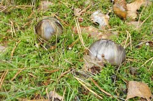 Foto: Die Schwarzfaserigen Ritterlinge sind da. Sie sind Pilze des Herbstes und Spätherbstes und überstehen in der Regel auch die ersten Fröste. Ihr größtes Vorkommen ist im Bayerischen Wald, ansonsten sind sie selten bis eher sehr selten. Sie sind sehr wohlschmeckend. (2 Fotos © Hermann)