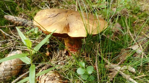 Foto: Der junge Flockenstielige Hexenröhrling sieht recht knackig aus. Einige weitere kamen noch hinzu.