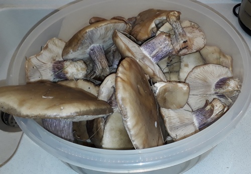 Die Violetten Rötelritterlinge sprießen nur so aus dem Boden. Es war eine Freude, sie zu ernten. Leider vermisse ich die Hallimasch. Aber ich gehe nochmal in dieser Urlaubswoche, das Wetter zeigt sich von seiner besten Seite.