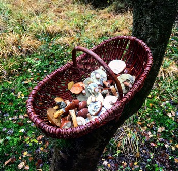Sie machten dann auch etwa 80% des gefüllten Korbes (Foto rechts) aus. Den Rest teilten sich Steinpilze, Birkenpilze, Sandröhrlinge, Edelreizker, Butterpilze und eine Krause Glucke.