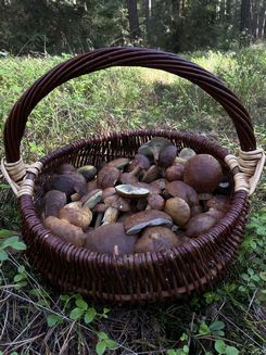 Foto: Die Pfifferlinge kamen Herman gerade recht, über ihren Fund freute er sich am meisten. Wie andernorts, wo werden auch in seinen Revieren die Pilzfunde allmählich übersichtlicher, siehe das Korbbild.