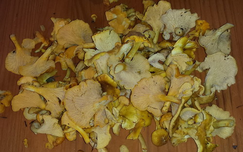 Auch Pfifferlinge fanden sich in guter Qualität. Vereinzelte Birkenreizker* und Semmelstoppelpilze habe ich stehen gelassen.“