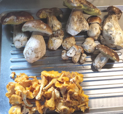 Foto: In 1200 Meter ü. N. N. erntete Rene diese kernigen Steinpilze sowie zwei, drei Hände voll Pfifferlinge. (Foto © René)
