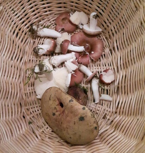Die Täublinge in Deinem Korb könnten Ziegelrote Täublinge zu sein, obwohl mir ihr Buckel dafür fast zu ausgeprägt scheint. Würde mich interessieren, ob Du mehr weißt.