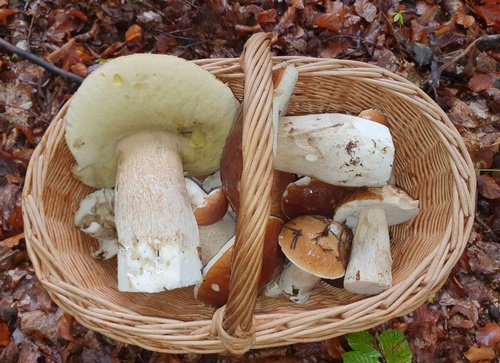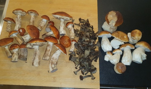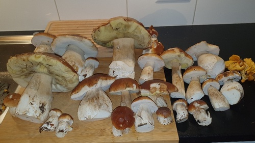 Und ich hatte Glück - ein paar schöne Steinpilze und Rotkappen kamen mit.