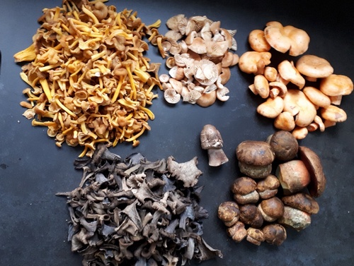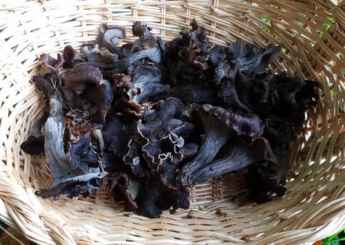 Aus den Totentrompeten gab es, zusammen mit einer Handvvoll Nelkenschwindlinge, eine Suppe. Zum Trocknen waren sie zu feucht waren. Die Reizker habe ich eingelegt.